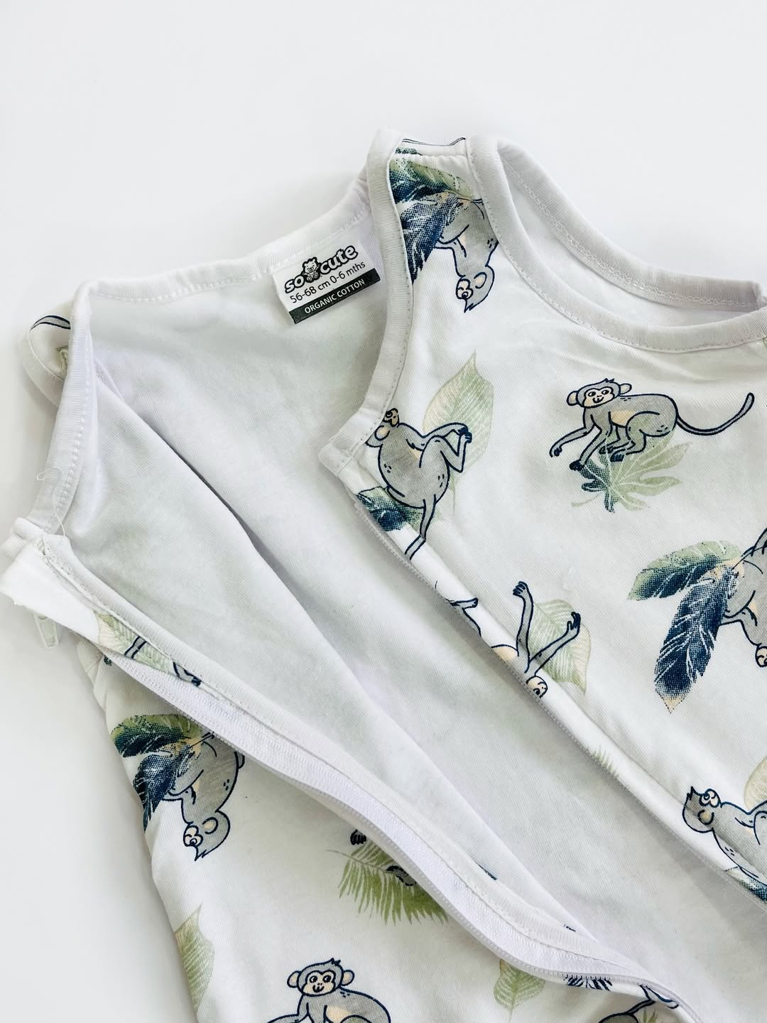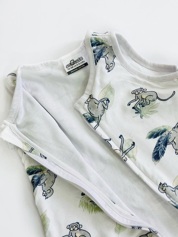 راحتی و امنیت خواب کوچولوتو با یه انتخاب درست شروع کن! کیسه خواب بدون آستین So Cute با پارچهی ۱۰۰٪ نخ پنبهای، نفسپذیر و لطیف، هم پهلو بچه گرم نگه میداره، هم جلوی پیچخوردن پتو و خطر خفگی رو میگیره طرح بامزه میمونا هم که عاشقش میشی مناسب فصل گرم زیپدار، پوشوندن راحت سایز نوزادی تا ۱۲ ماه — ۰۶ ماه قد ۶۹ ۶۱۲ ماه قد ۷۷
