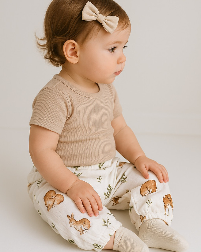 شلوار کودکانه وارداتی با طرح حیوانات جنگلی با این شلوار موسلین لطیف و بامزه، کوچولوی نازت راحتی رو با استایل ترکیب میکنه! جنس نرم و تنفسپذیر طرحهای خاص حیوانات سایز: ۲۴ ماه وارداتی با کیفیت بالا سایز ۷۳ (۶۱۲ماه ) قد ۳۹ سایز ۸۰ (۱۲۱۸ ) ماه قد ۴۳ سایز ۹۰ (۱۸۲۴ ماه ) قد ۴۶ یه انتخاب خاص برای مامانای خوشسلیقه برای بازه!
